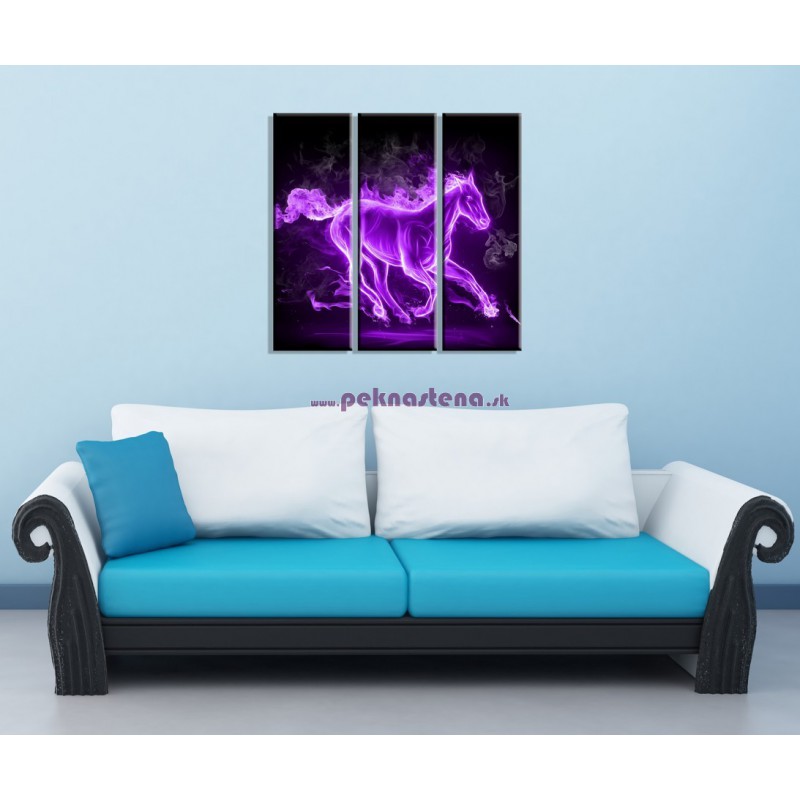 Fialový horiaci kôň - 3dielny 90x90cm