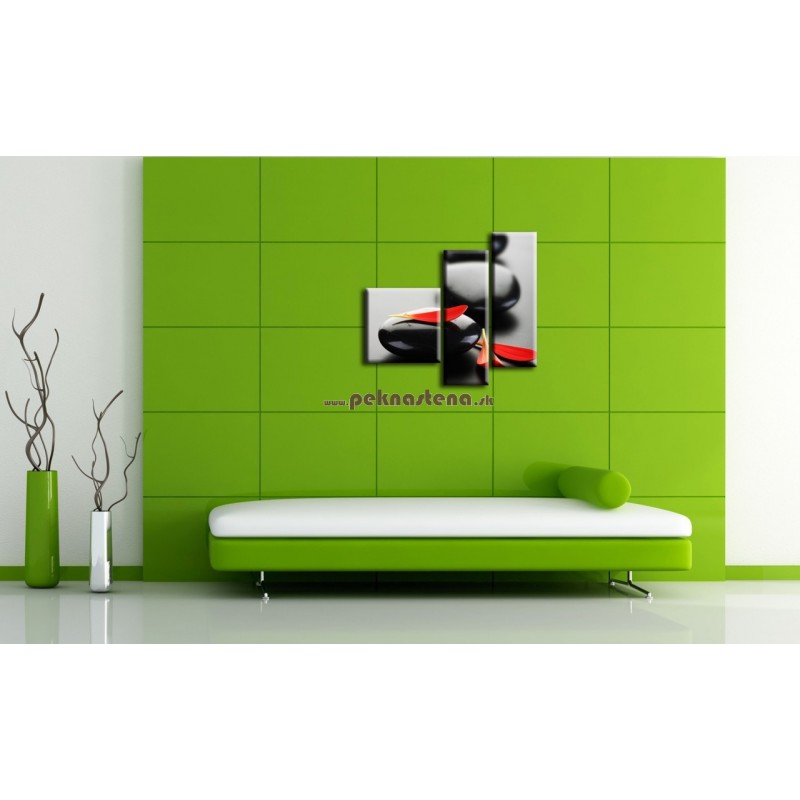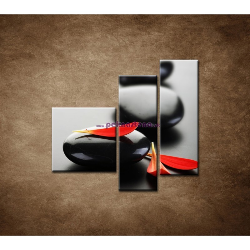 Čierny kameň s červeným lupeňom - 3dielny 110x90cm