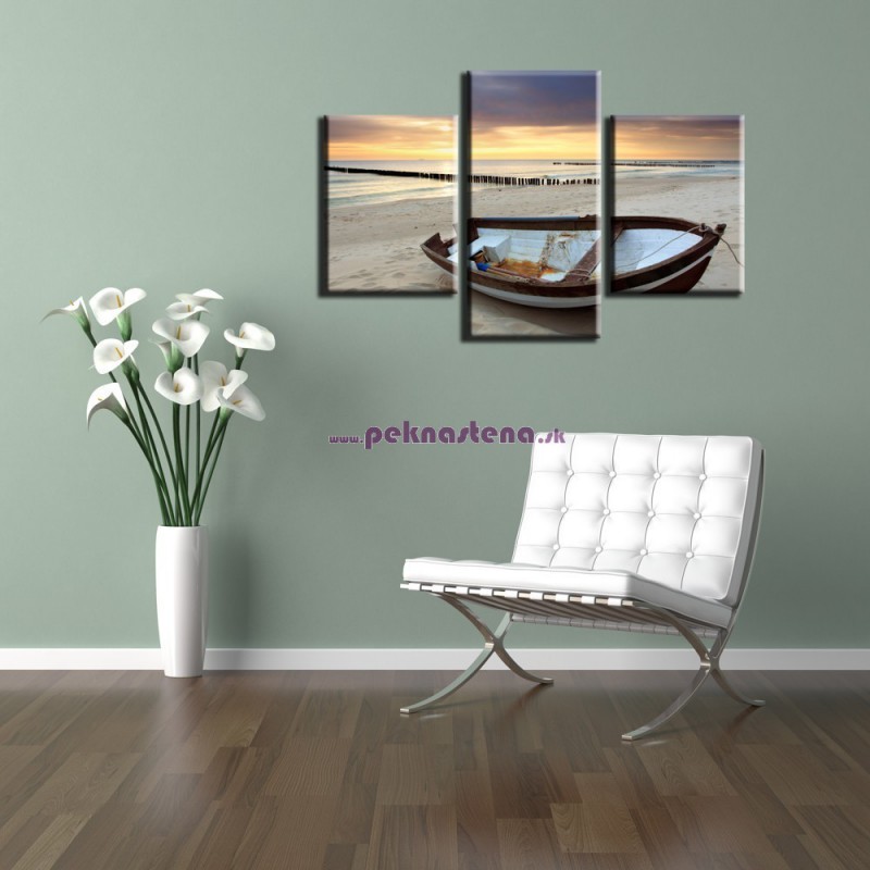 Loďka na pláži - 3dielny 90x60cm