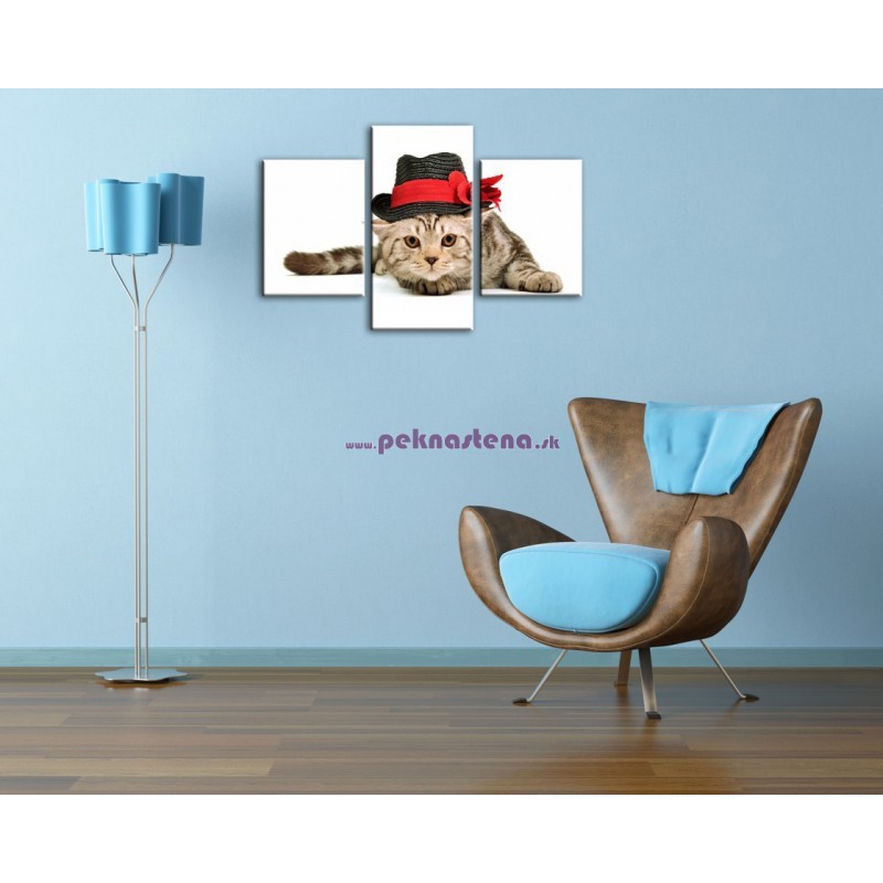 Mačiatko v čiernom klobúku - 3dielny 90x60cm