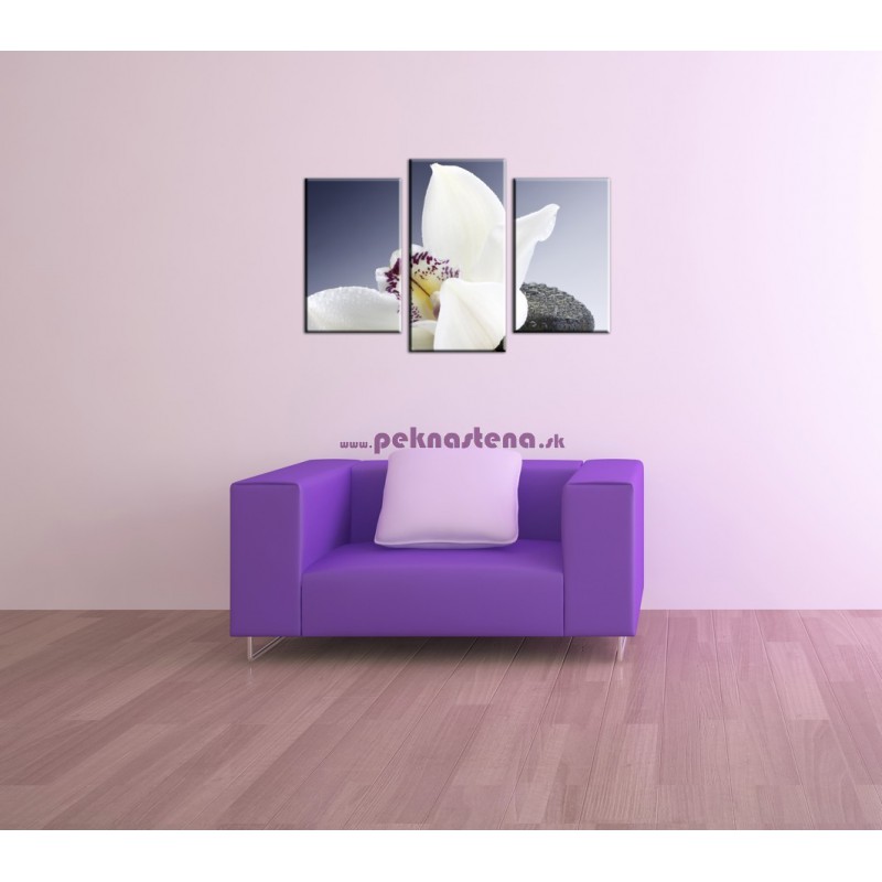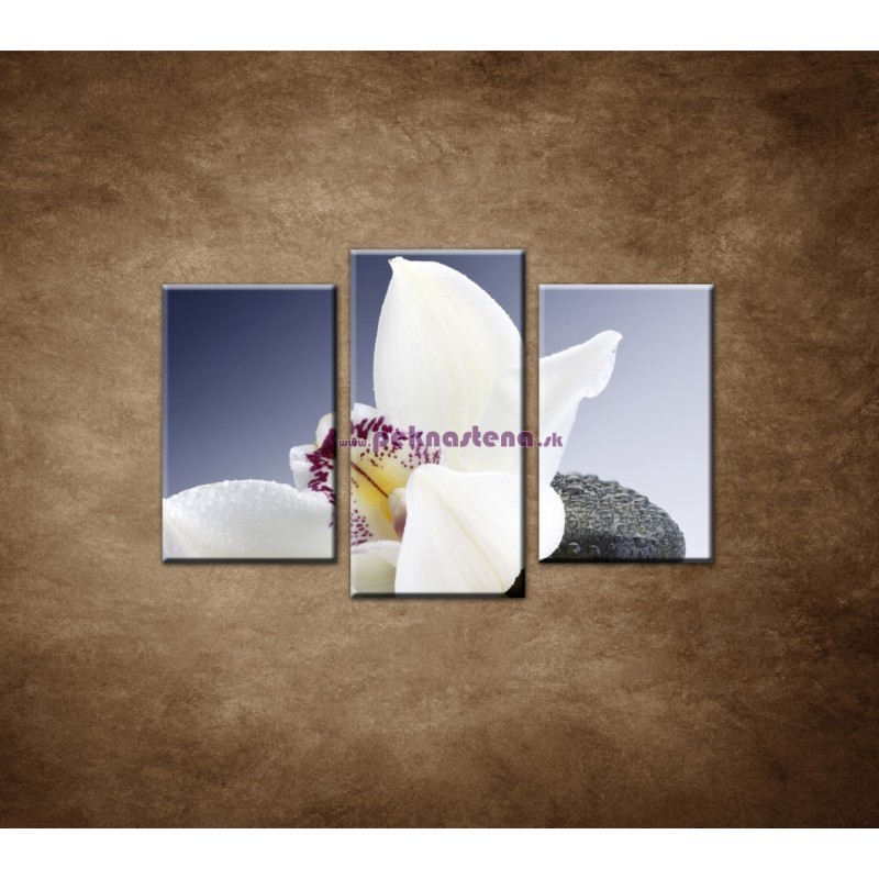 Biela orchidea na čiernom kameni - 3dielny 75x50cm
