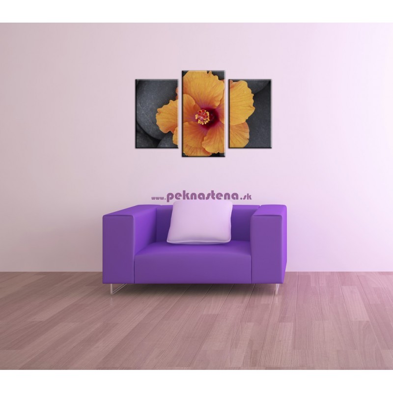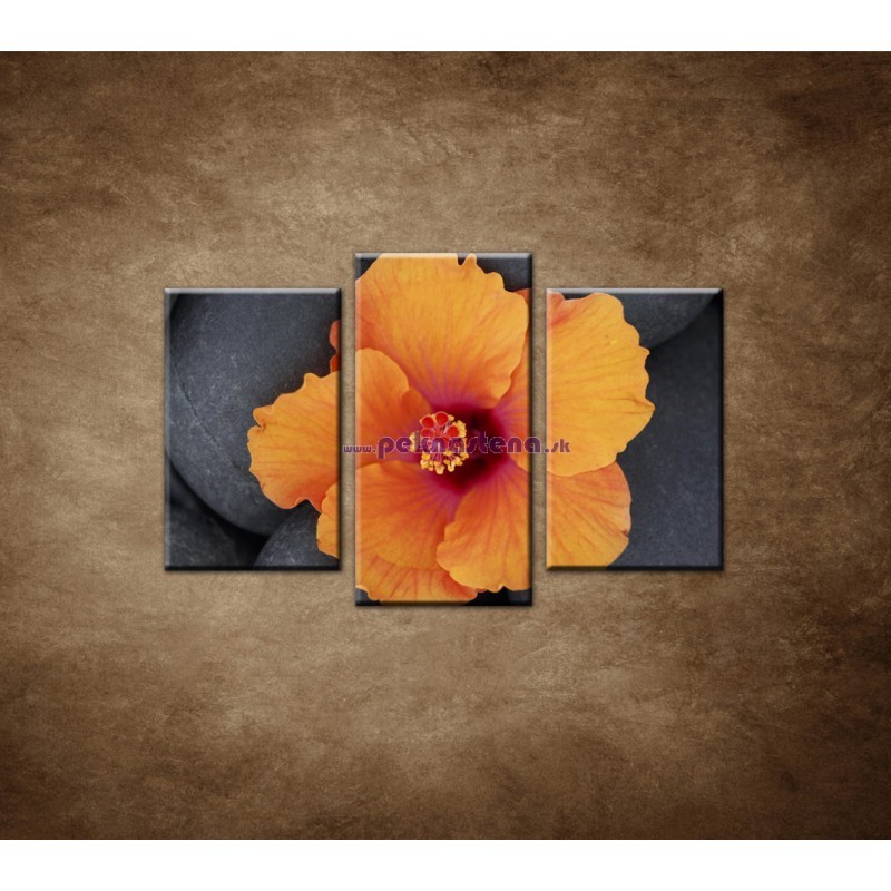 Oranžový ibištek na kameni - 3dielny 75x50cm