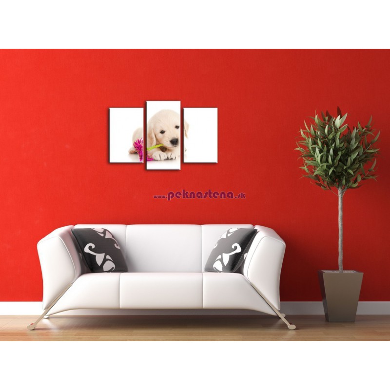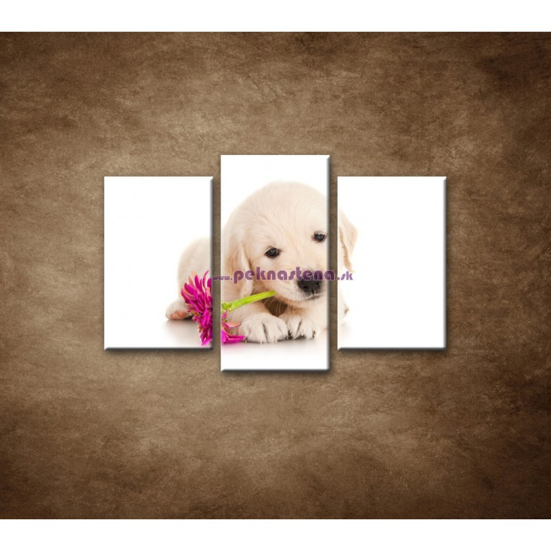 Psík s kvetom - 3dielny 75x50cm