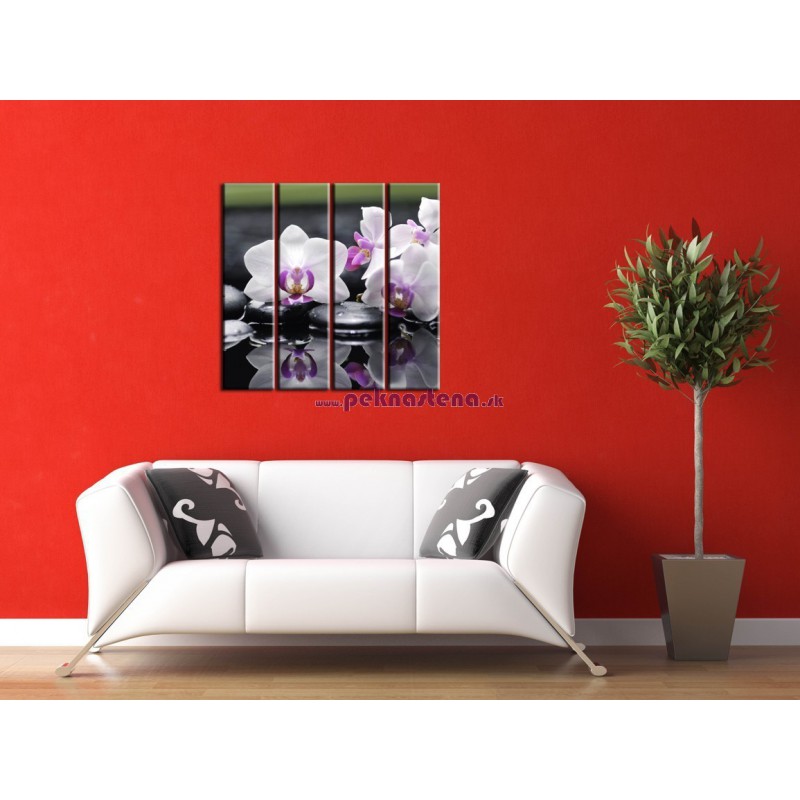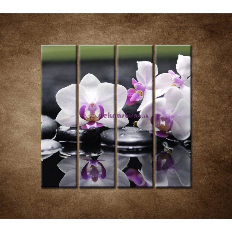 Ružová orchidea a kamene - 4dielny 120x120cm