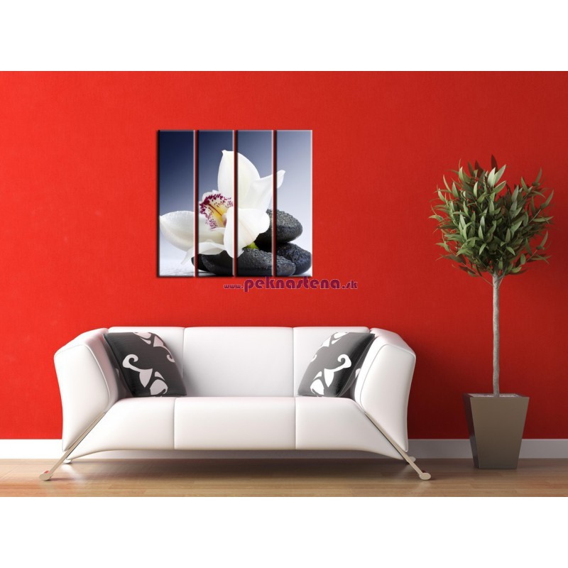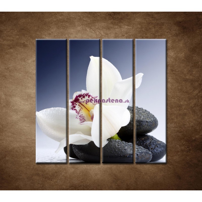 Biela orchidea na čiernom kameni - 4dielny 120x120cm