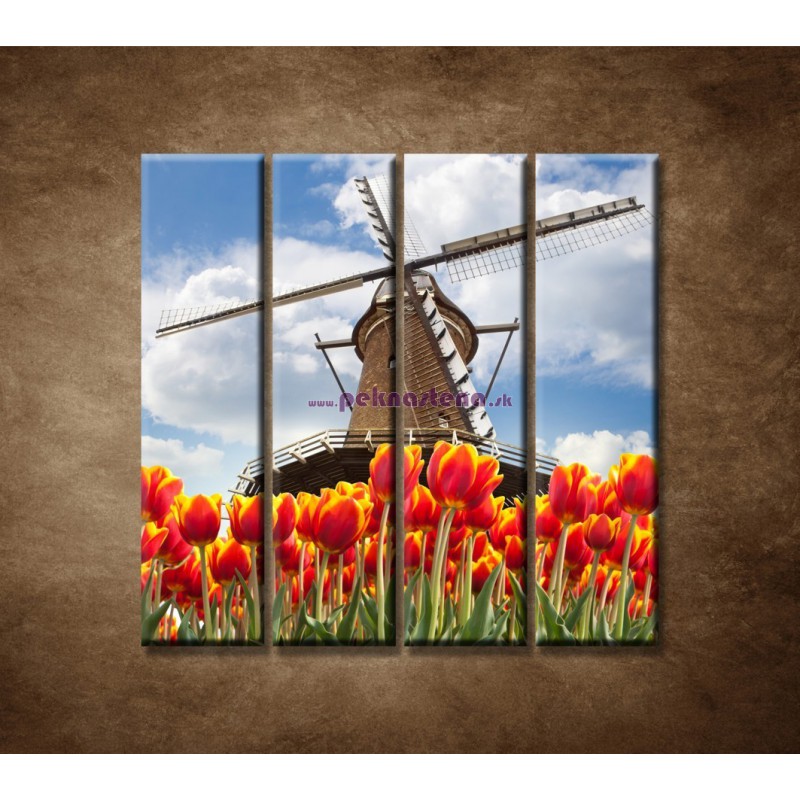 Mlyn s tulipánmi - 4dielny 120x120cm